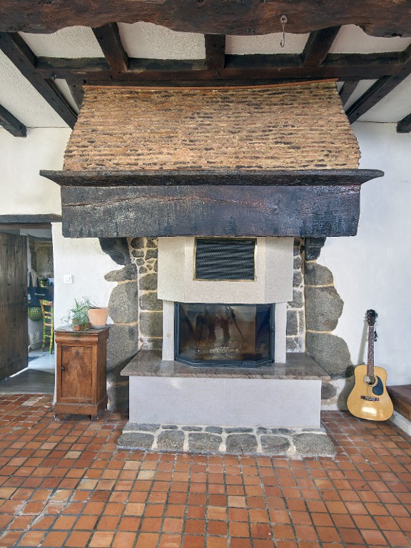 Logis principal. Salle. Cheminée sur le mur de refend à jambages en granite, linteau et consoles en bois, manteau en briqueImmatriculation
