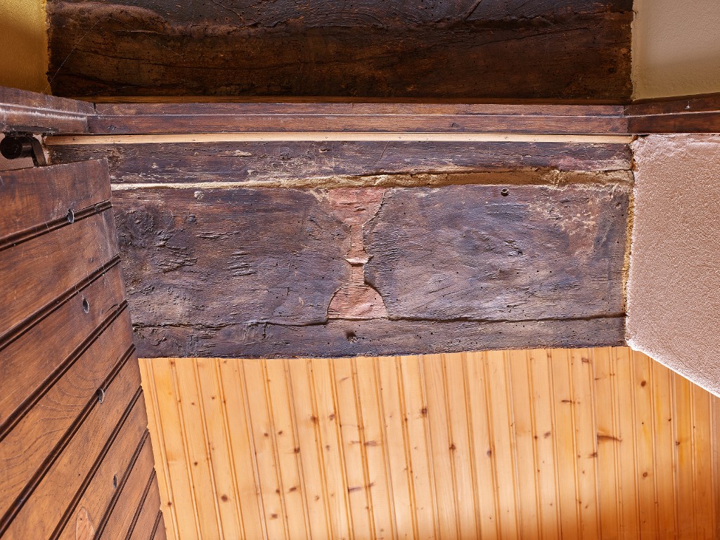 Logis principal. Porte de la chambre est. Remploi d'une poutre ornée d'un calice pour le linteauImmatriculation
