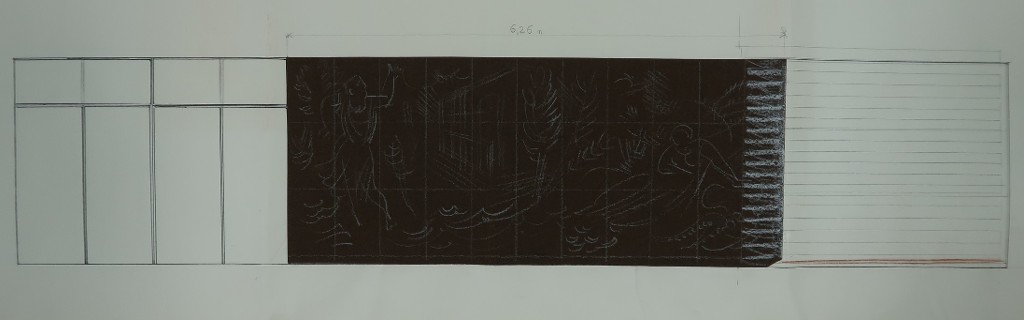 Séraphin Gilly, panneau de boiserie gravée : maquette. Vers 1964.Immatriculation