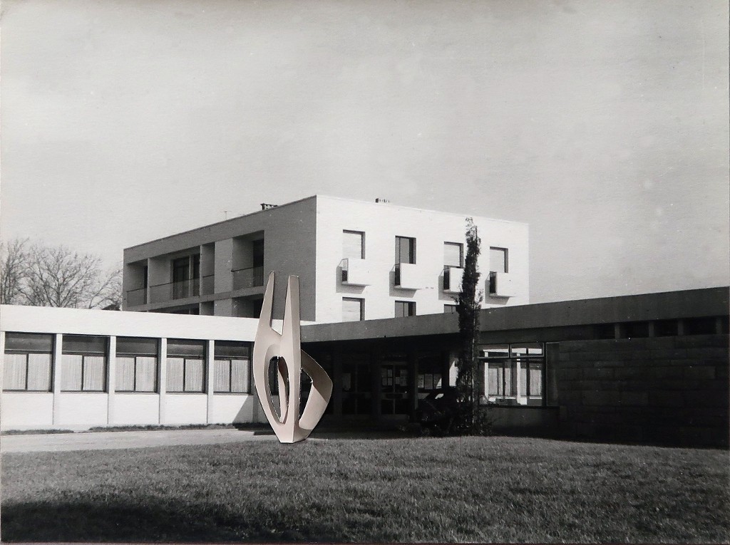 Francis Pellerin, photomontage : la maquette de la sculpture 'Allégresse' sur le site d'implantation future, vers 1962.Immatriculation