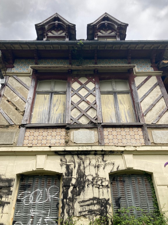 Façade sud : détail du décor de grès (état en 2024)Immatriculation