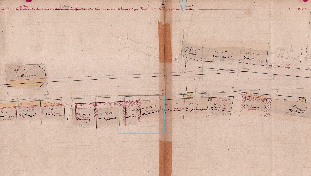Extrait du plan d'alignement de la Grand'Rue en 1846 avec la mention des deux maisons en bois.Immatriculation