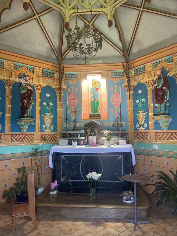 Vue d'ensemble de l'intérieur de la chapelle : autel et statue de Sainte-AnneImmatriculation