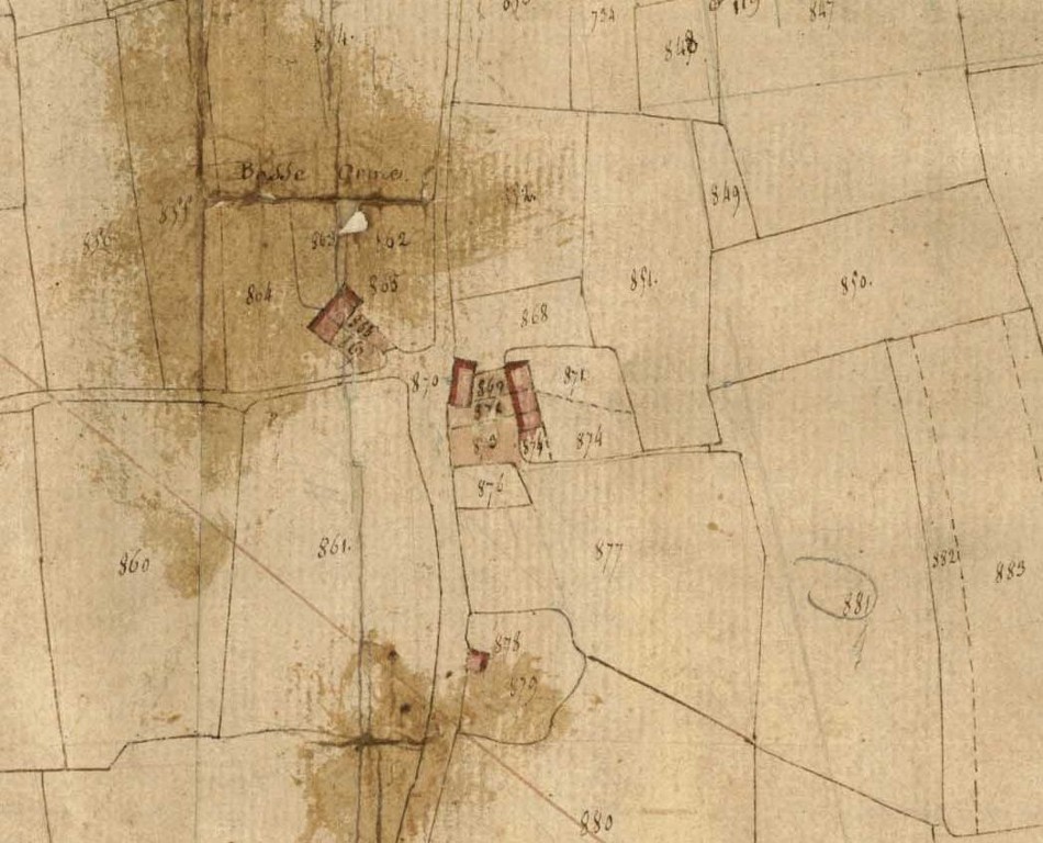 La Basse Orme en 1825. Extrait du cadastre ancien, 2e feuille (Archives départementales d'Ille-et-Vilaine, série 3 P)Immatriculation