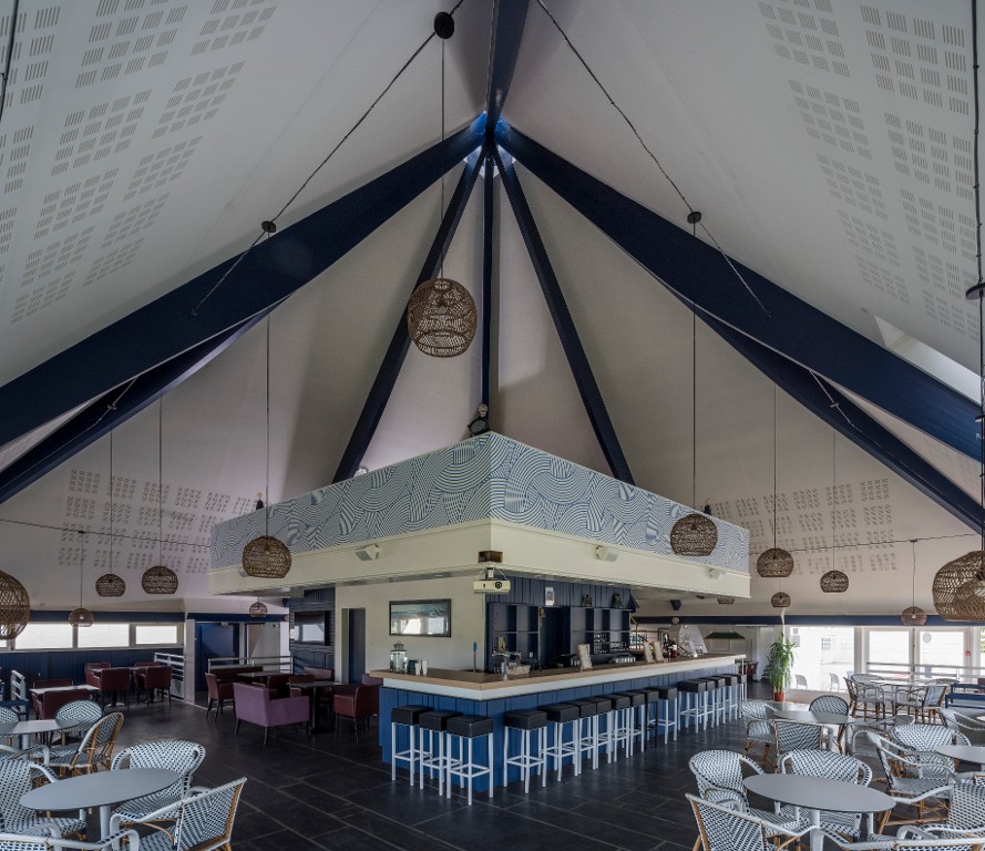 L'oculus situé au sommet de la pyramide éclaire le bar situé à son aplomb et révèle l'amplitude du volume intérieur.Immatriculation