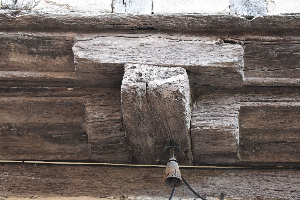 About de poutre supportant une sablière moulurée et encadré par des entretoises.Immatriculation