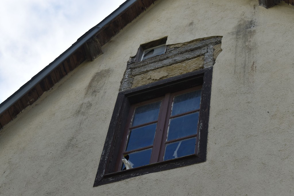 Détail d'une fenêtre et d'une partie de pan de bois découvertImmatriculation