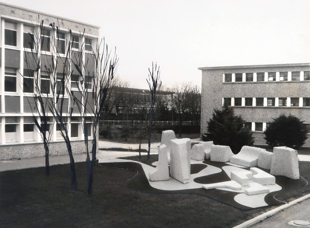 Maquette de l'oeuvre de Roger Joncourt, Jean-Paul Jappé et Joël Moulin. Mise au point environnement végétal, mars 1975.Immatriculation