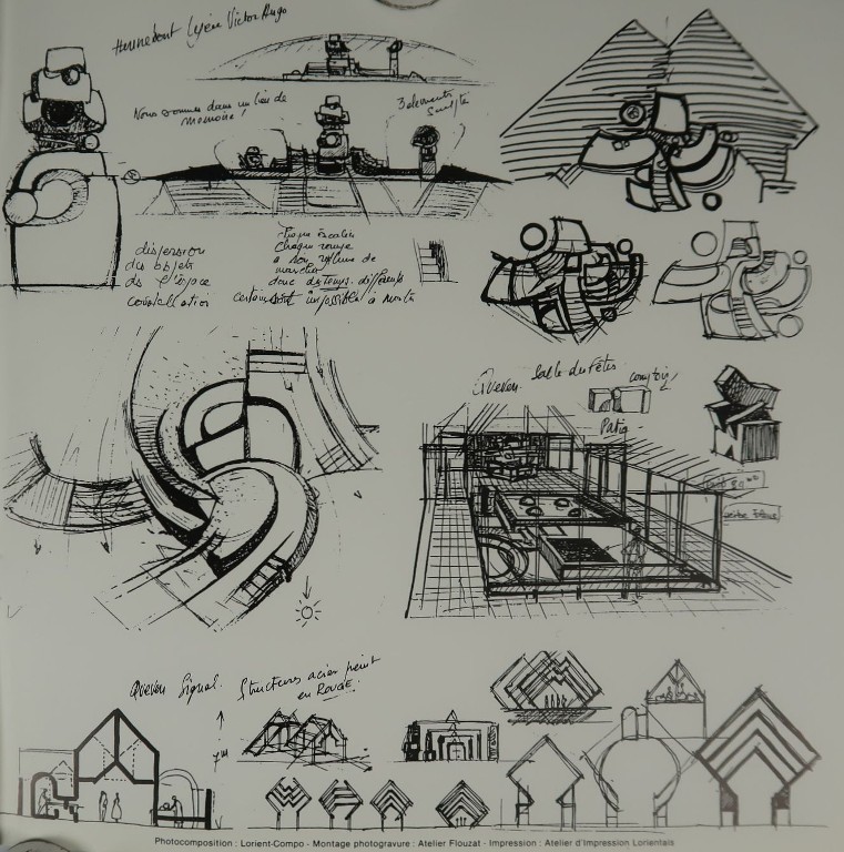Michel Politzer : espace sculpté pour le lycée d'Hennebont et autres oeuvres, esquisses, vers 1986.Immatriculation