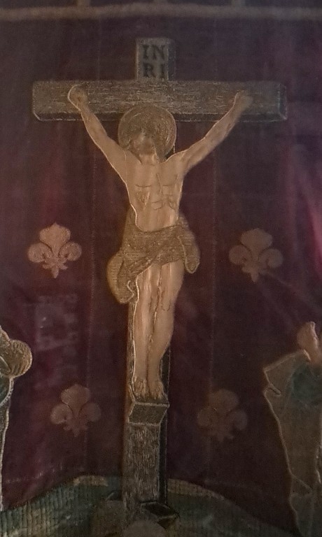 Bannière : saint Laurent, Crucifixion, église Sainte-Anne (Trégastel),