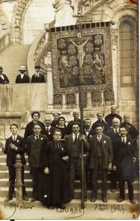 Carte postale : 1924, pèlerinage à Lourdes, avec délégation de la commune de Hengoat- Viron PhtotographeImmatriculation