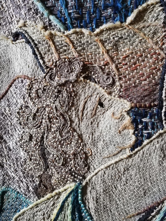 Détail : visage d'Ange brodé acompagnant la Vierge dans son AssomptionImmatriculation