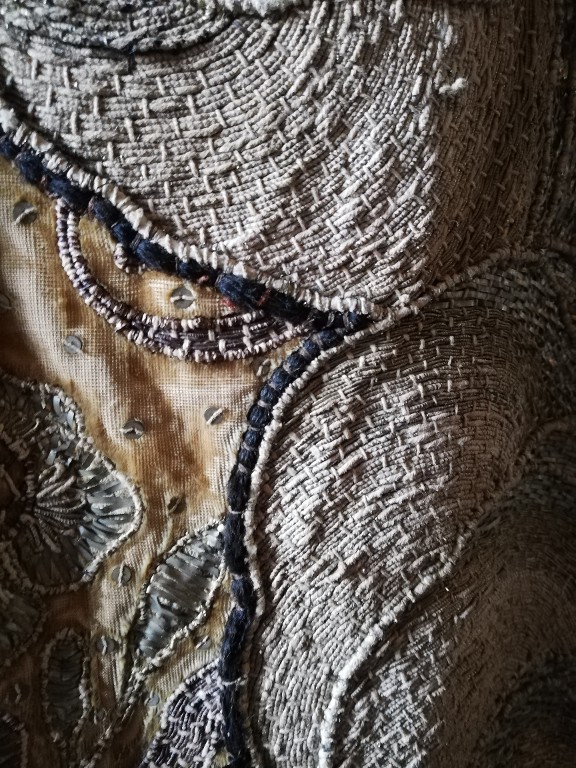 Détail : broderie couchure concentrique - Face AssomptionImmatriculation