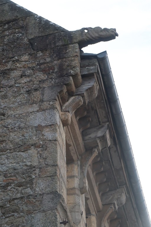 Gargouille en pierre insérée dans le pignon nord.Immatriculation