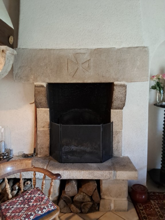 Dépendances, cheminée en granite, détail : croix pattéeImmatriculation