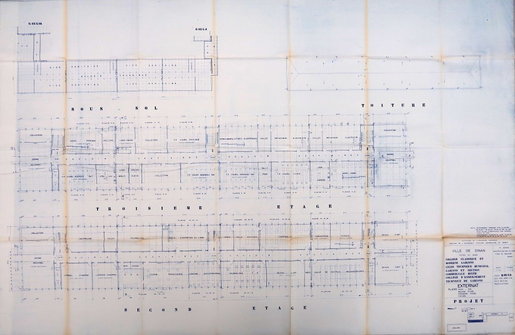 Plans de différents étages de l'externat. Patrice Simon, architecte, 1962.Immatriculation