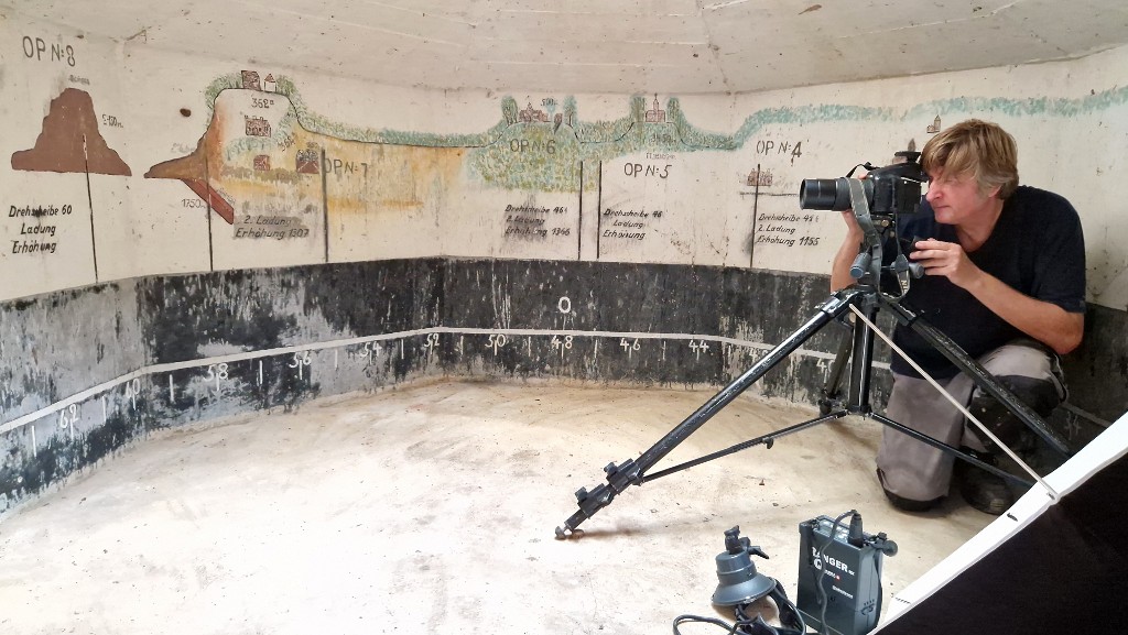 Vue de la couverture photographique des peintures murales du bunker par Bernard Bègne, photographe au service de l'Inventaire du patrimoine culturelImmatriculation