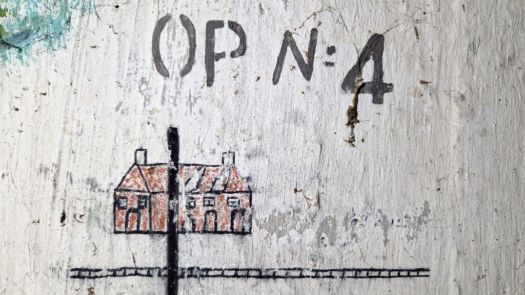 Vue intérieure : panorama avec points de repères et instructions de tir. Devant le bâtiment (sagit-il de lHôtel de la gare du Val-André ?) est représentée la voie ferréeImmatriculation