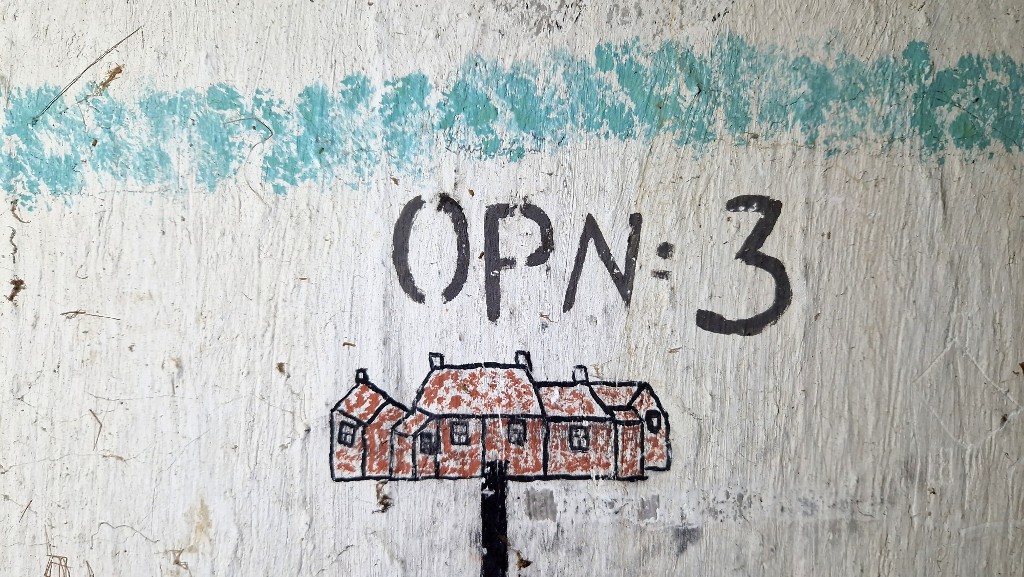Vue intérieure : panorama avec points de repères et instructions de tir. Le repère figure un groupe de plusieurs maisons, un hameau vers le sud, mais lequel ?Immatriculation