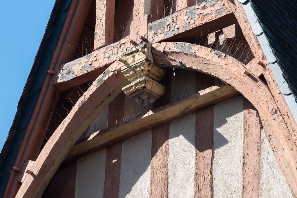 Ferme débordante avec clé pendante ornée et inscription "Anno 2007" correspondant à la restauration du bâtiment.Immatriculation