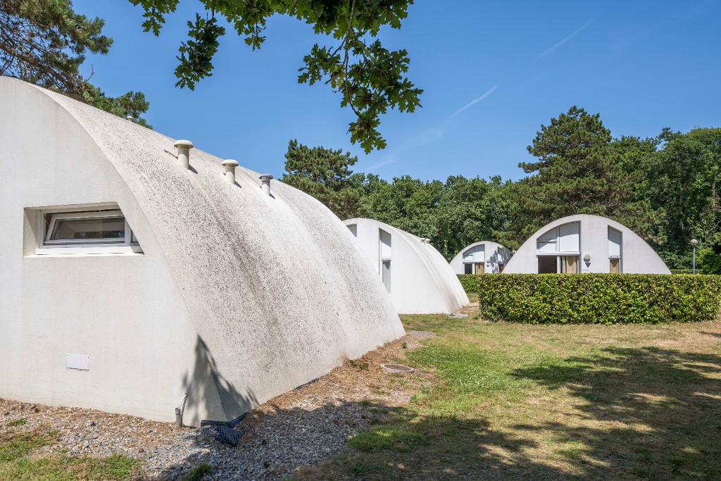 Construits en 1970 pour soutenir la création d'un centre UCPA (Union nationale des Centres sportifs de Plein Air) à Beg-Meil, 14 unités d'hébergement et un bâtiment collectif complètent le plan masse au nord du site.Immatriculation