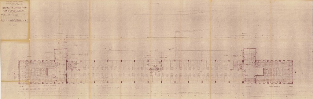 Internat de jeunes filles. Plan d'étage courant. Raymond Lopez, architecte, 1952.Immatriculation