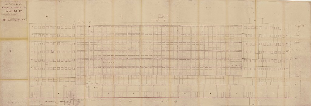 Internat de jeunes filles. Façade sud-est. Raymond Lopez, architecte, 1952.Immatriculation
