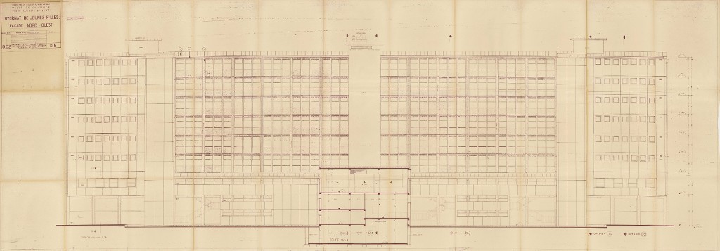 Internat de jeunes filles. Façade nord-ouest. Raymond Lopez, architecte, 1952.Immatriculation