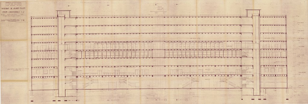 Internat de jeunes filles. Coupe longitudinale. Raymond Lopez, architecte, 1952.Immatriculation
