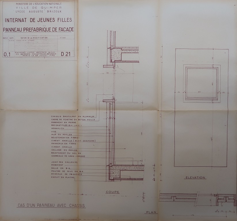 Internat de jeunes filles. Panneau préfabriqué de façade. Raymond Lopez, architecte, 1952.Immatriculation