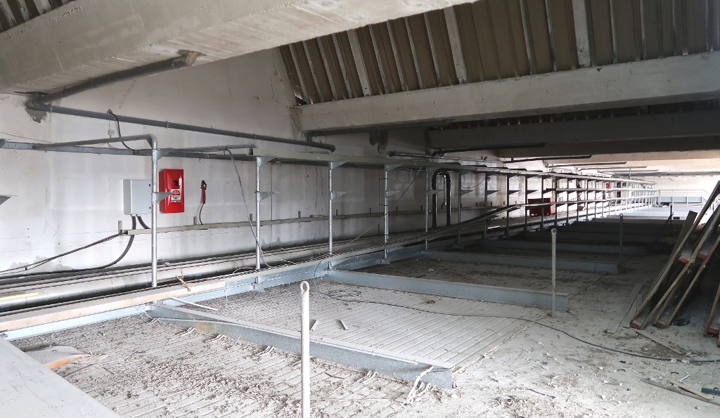 Criée de Concarneau : vue intérieure des sheds et tuyaux de refroidissement des salles frigorifiquesImmatriculation