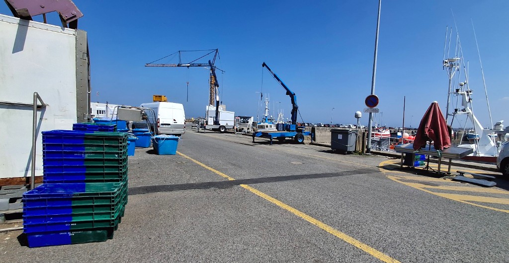 Activités portuaires : grues de manutention pour décharger la pêche, zone de circulationImmatriculation