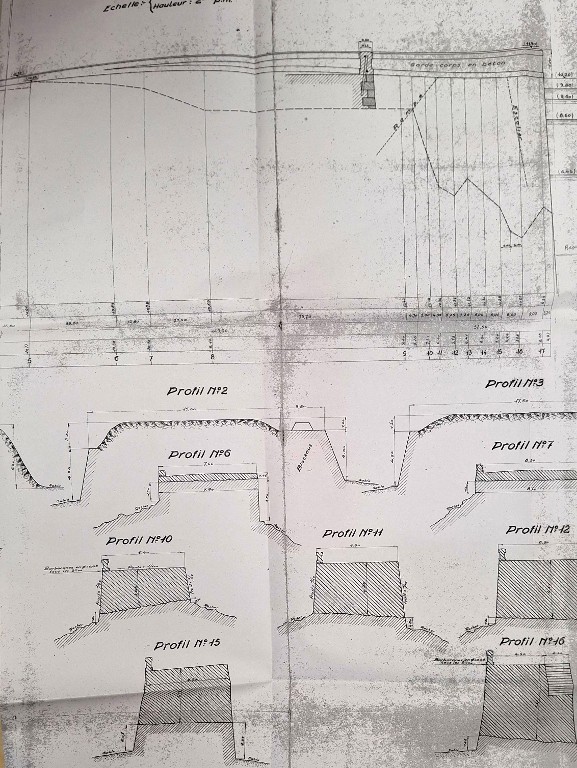 Coupe, profils de l'ouvrage de Pen ar Vil, juillet 1947Immatriculation