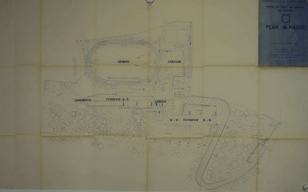 Plan de masse du lycée avec les emplacements des décorations. Georges Tourry et Henri Conan, architectes, vers 1966.Immatriculation
