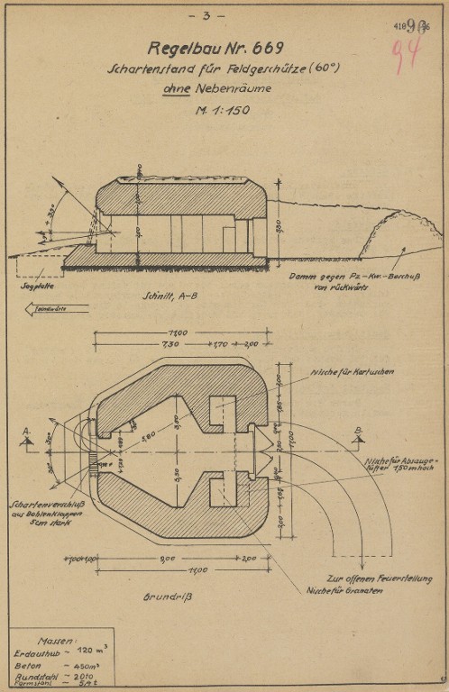 Plan d'un bunker-casemate de type 669 (source : (Bundesarchiv : RH_2_410_0193)Immatriculation