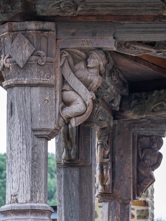 Le poteau est traité comme une colonne avec base, fut et chapiteau, tandis qu'un ange orne la console.Immatriculation