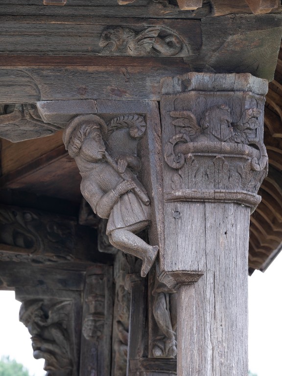 Musicien et sa flute ornant une console du porche.Immatriculation