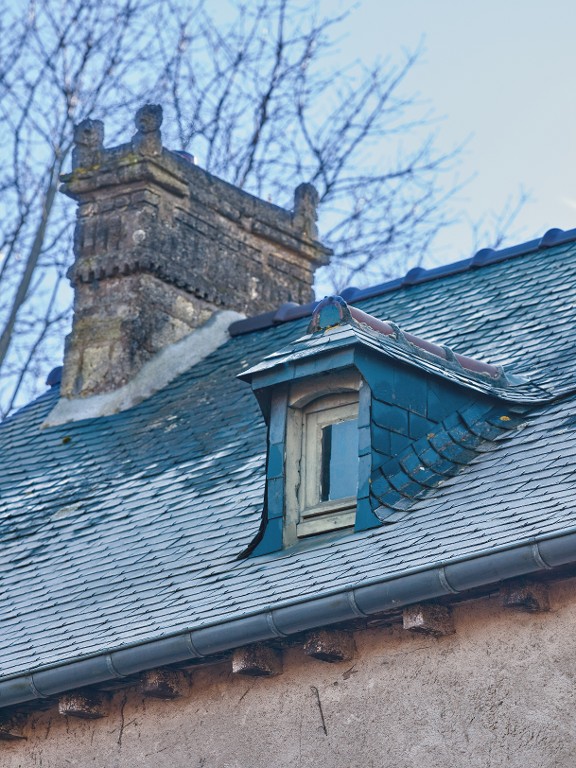 Logis. Souche de cheminée et petite lucarne sur le versantImmatriculation