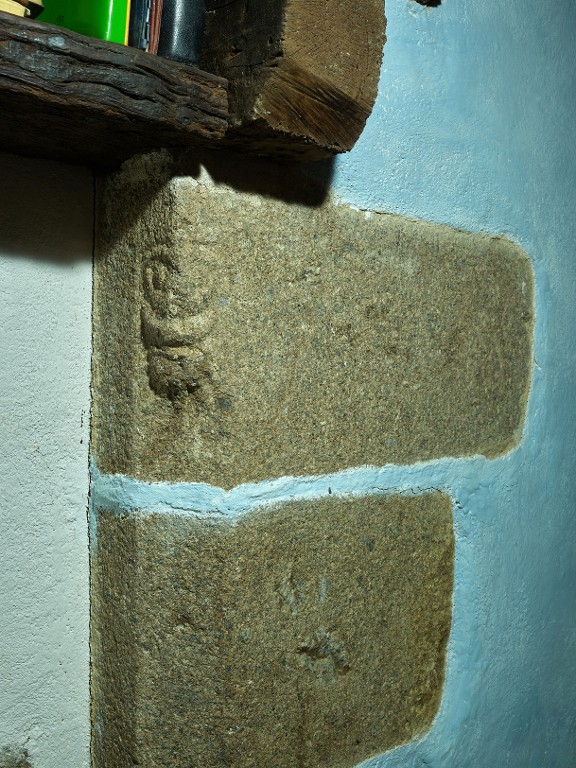 Logis principal. Etage. Cheminée sur le mur de refend. Détail d'un jambage avec tête sculptée sur la partie supérieureImmatriculation