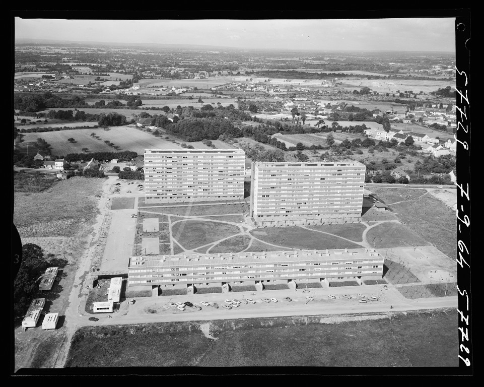 Vue arérienne sur les immeubles et le square des Cloteaux. 7 septembre 1964.Immatriculation