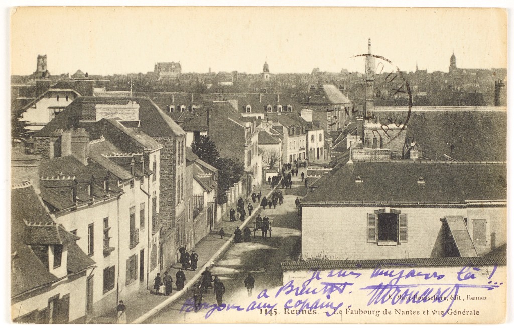 Carte postale (1er quart 20e siècle). Vue générale prise de la rue de Nantes près du boulevard de la Tour d'Auvergne.Immatriculation