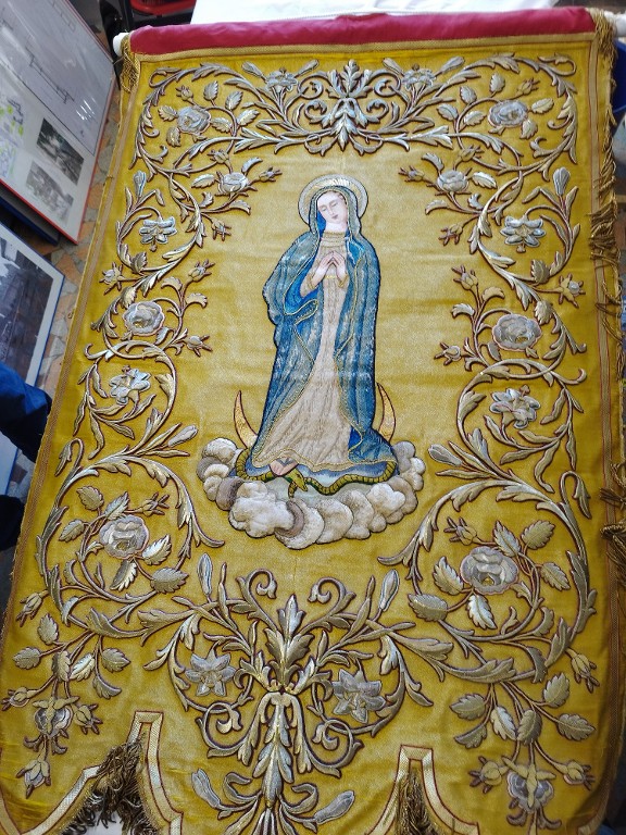Bannière de procession : saint Convoïon, Immaculée Conception, abbatiale Saint-Sauveur (Redon),