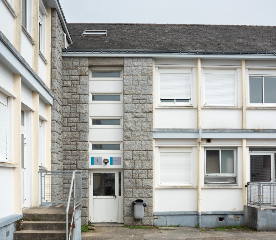 Entrée nord de l'internat. Vue prise de l'ouest. Yves Guillou et Georges Tourry, architectes, 1959.Immatriculation