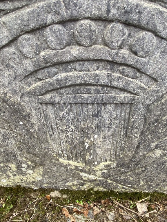 Aux pieds de la tombe de Jean-Marie de La Bourdonnaye, le blason de sa famille.Immatriculation