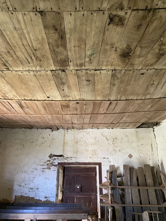 Intérieur du bâtiment, très endommagé.Immatriculation