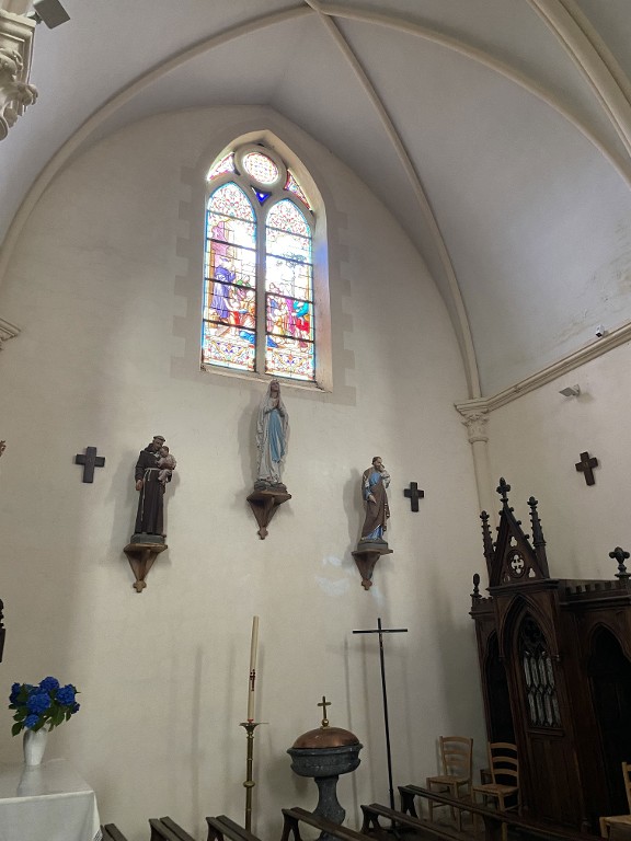 Ensemble de deux verrières à personnages : Présentation de la vierge au temple et Saint Yves, église Saint-Brieuc (Cruguel),