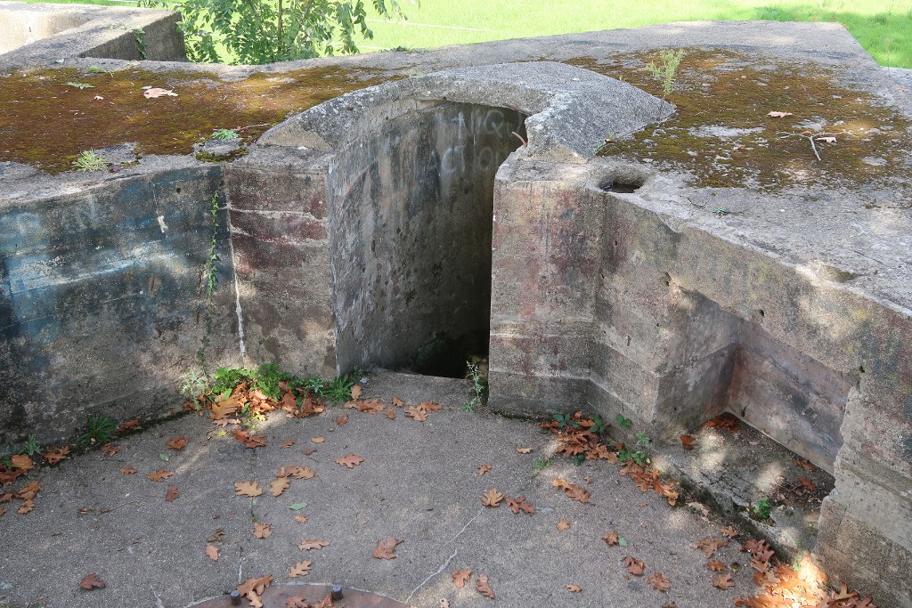 Vue de l'entrée de l'escalier desservant les salles de calculs et des opérations depuis la cuve du télémètreImmatriculation