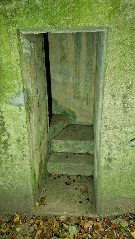 Vue de l'entrée du poste d'observation nommé Offener Beobachter. Il est accessible par un petit escalier tournantImmatriculation