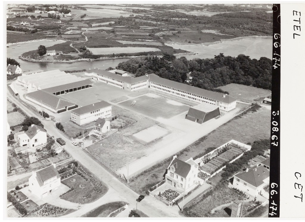 Musée de Bretagne (Rennes) : 971.0037.12095.2 ; 971.0037.12096.2 ; 971.0037.12097.2 ; 971.0037.12098.2. Heurtier, Vue aérienne d'ensemble du CET d'Etel, 1967