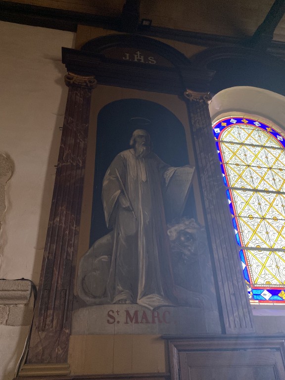 Lambris de hauteur, peinture : les christ en croix, évangélistes, église paroissiale Sainte-Croix (La Croix-Helléan),
